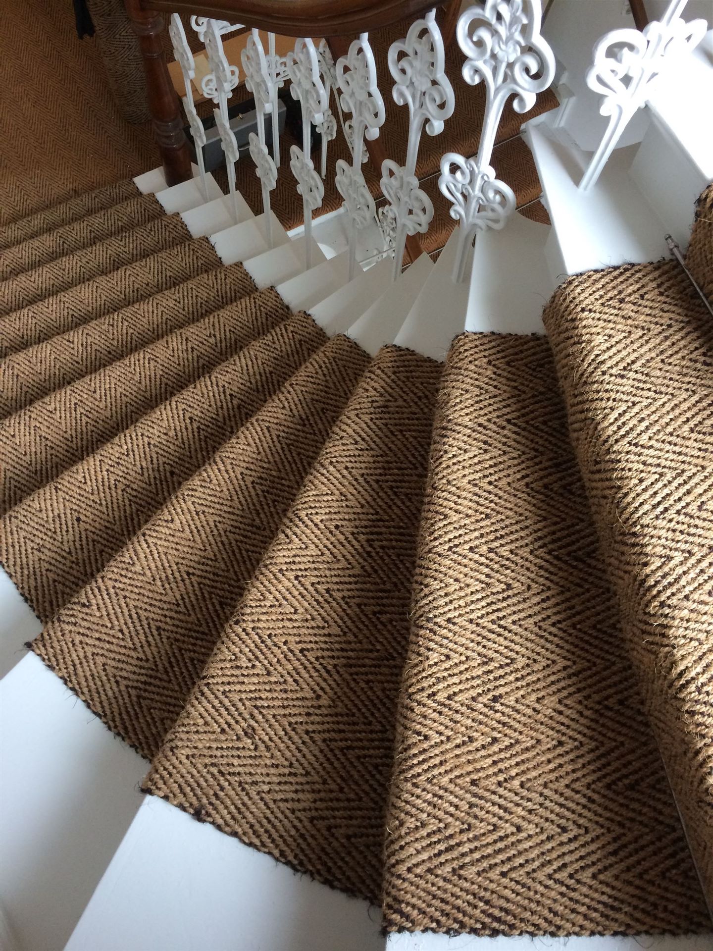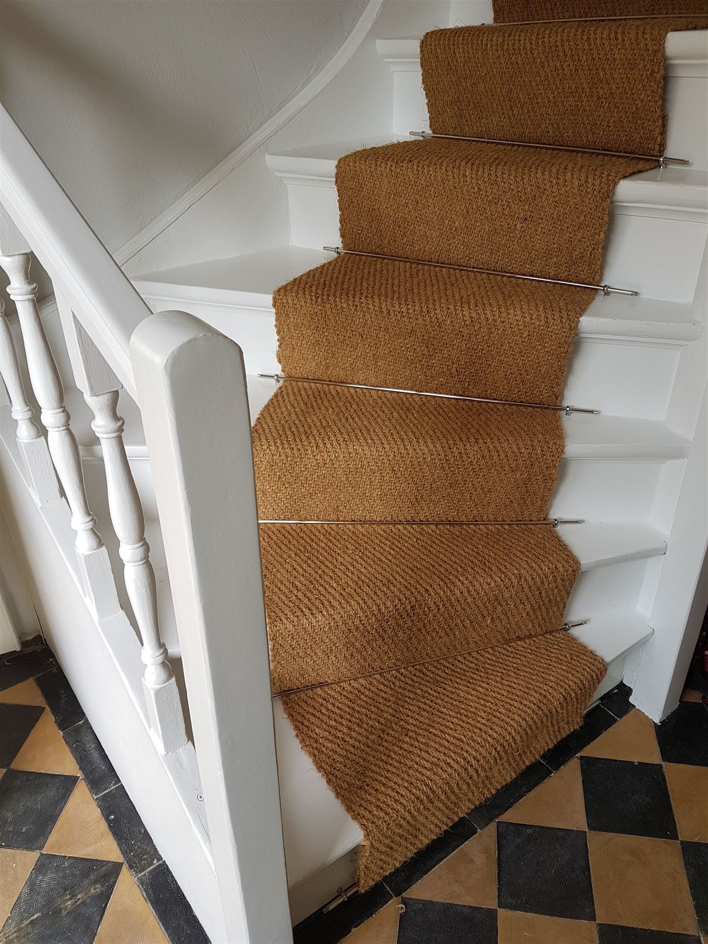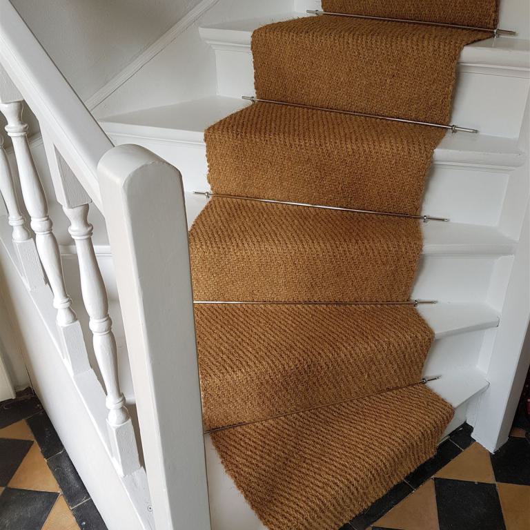 Kokos-Läufer mit Stangen,Ösen und maschinell genähten Falten